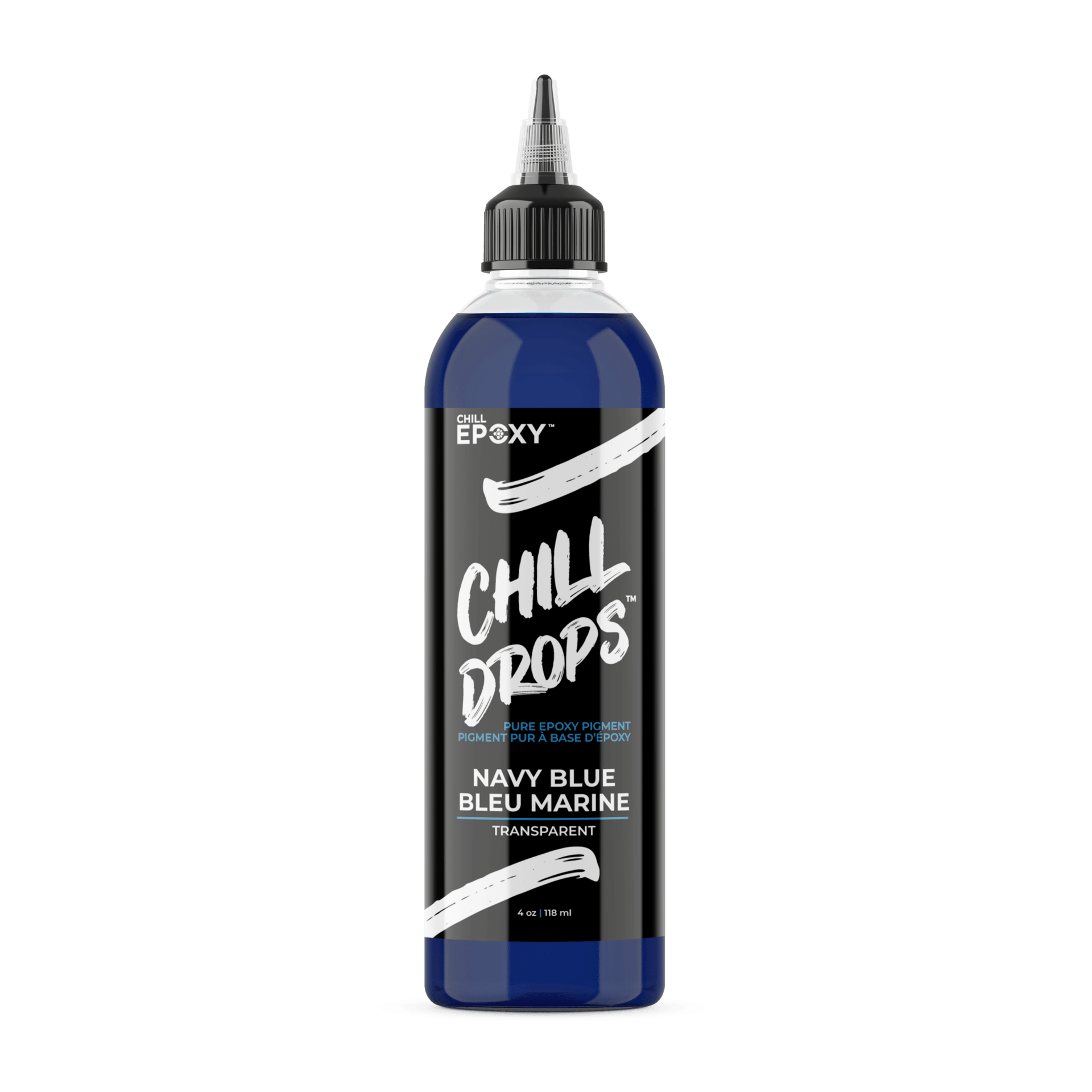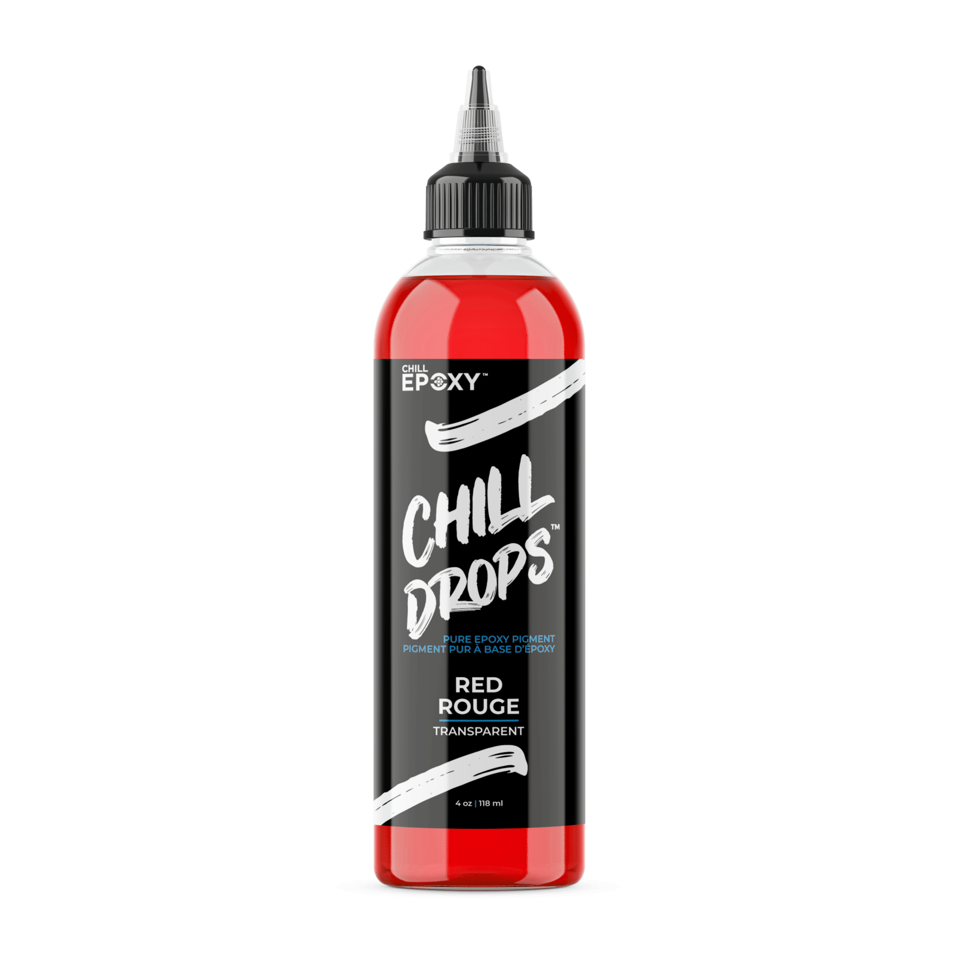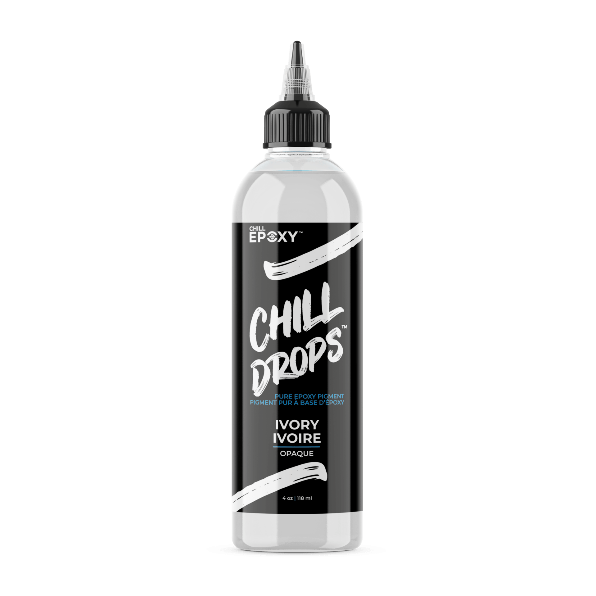 To use CHILL DROPS™, we recommend starting with 2-3% pigment by epoxy volume to build the color. Mixing is easy, and only a small amount is needed to create stunning and long-lasting results. Unlike alcohol or water-based pigments that can fade over time, our epoxy-based pigments will outlast other solutions. You can control the strength and intensity of the color by slowly adding drops one at a time until you achieve the desired color. All colors are available in transparent or opaque, except for white, which is only available in opaque. Add some life to your epoxy projects with CHILL DROPS™, the perfect solution for coloring CHILL EPOXY™ resins and casting & coatings resins.